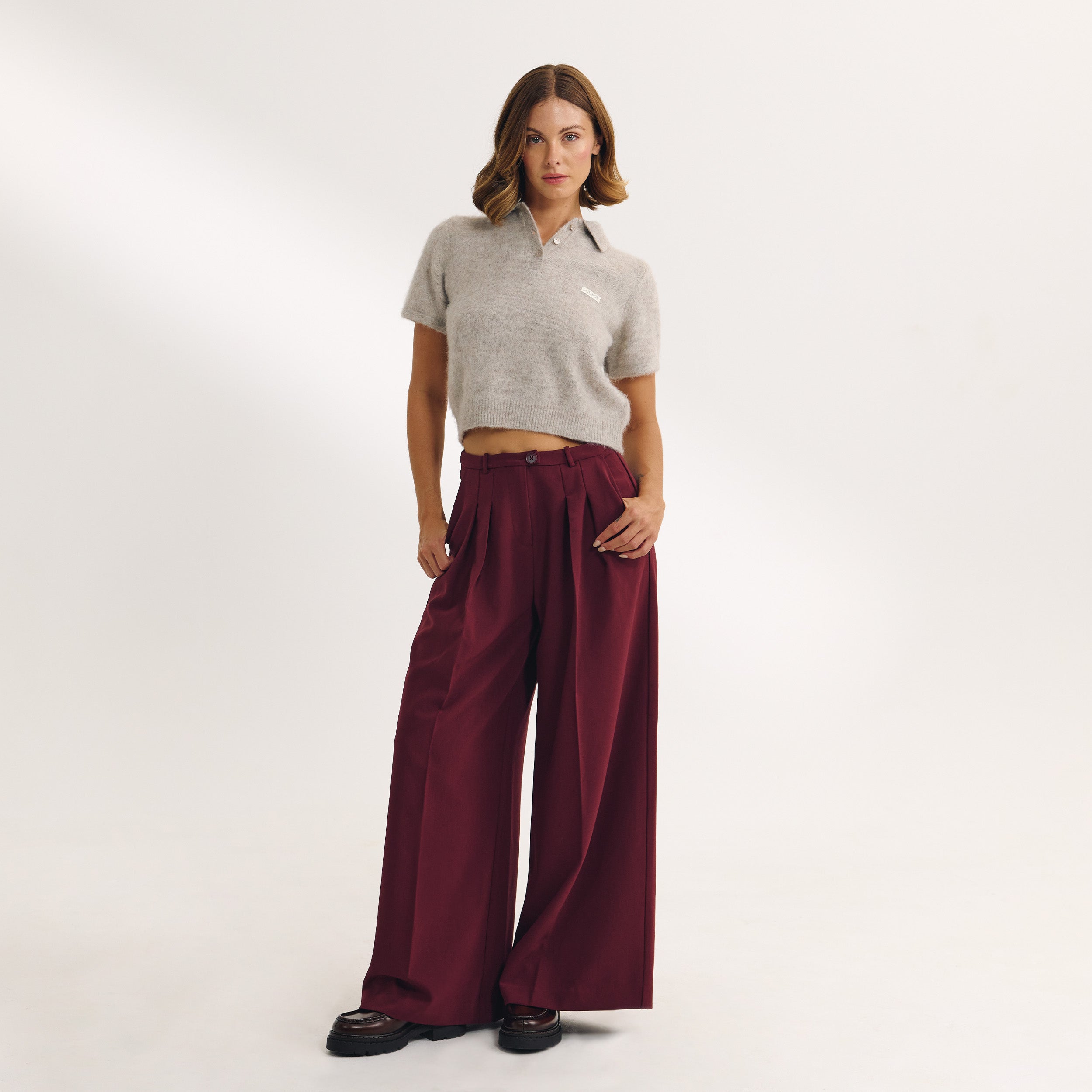 Wide-Leg Tailored Pants - Cherry Lacquer